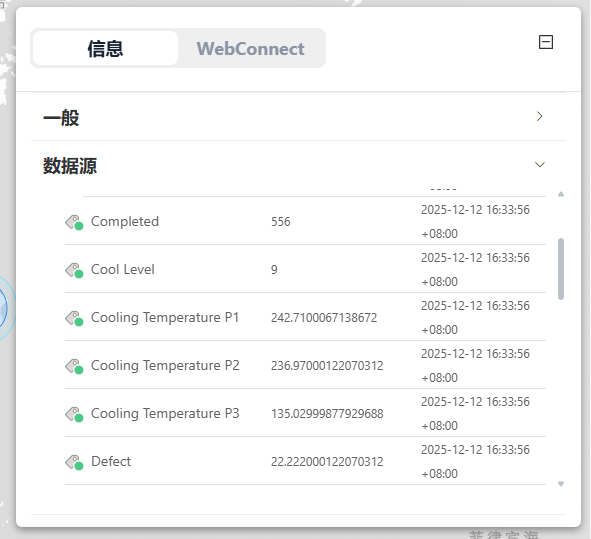注: 仅有开通 仪表板 (Dashboard) 服务的 HMI 设备才可使用此高端功能(如:显示数值、动态数据及未来扩充功能)。若未开通,此区块可能无法显示即时数据。